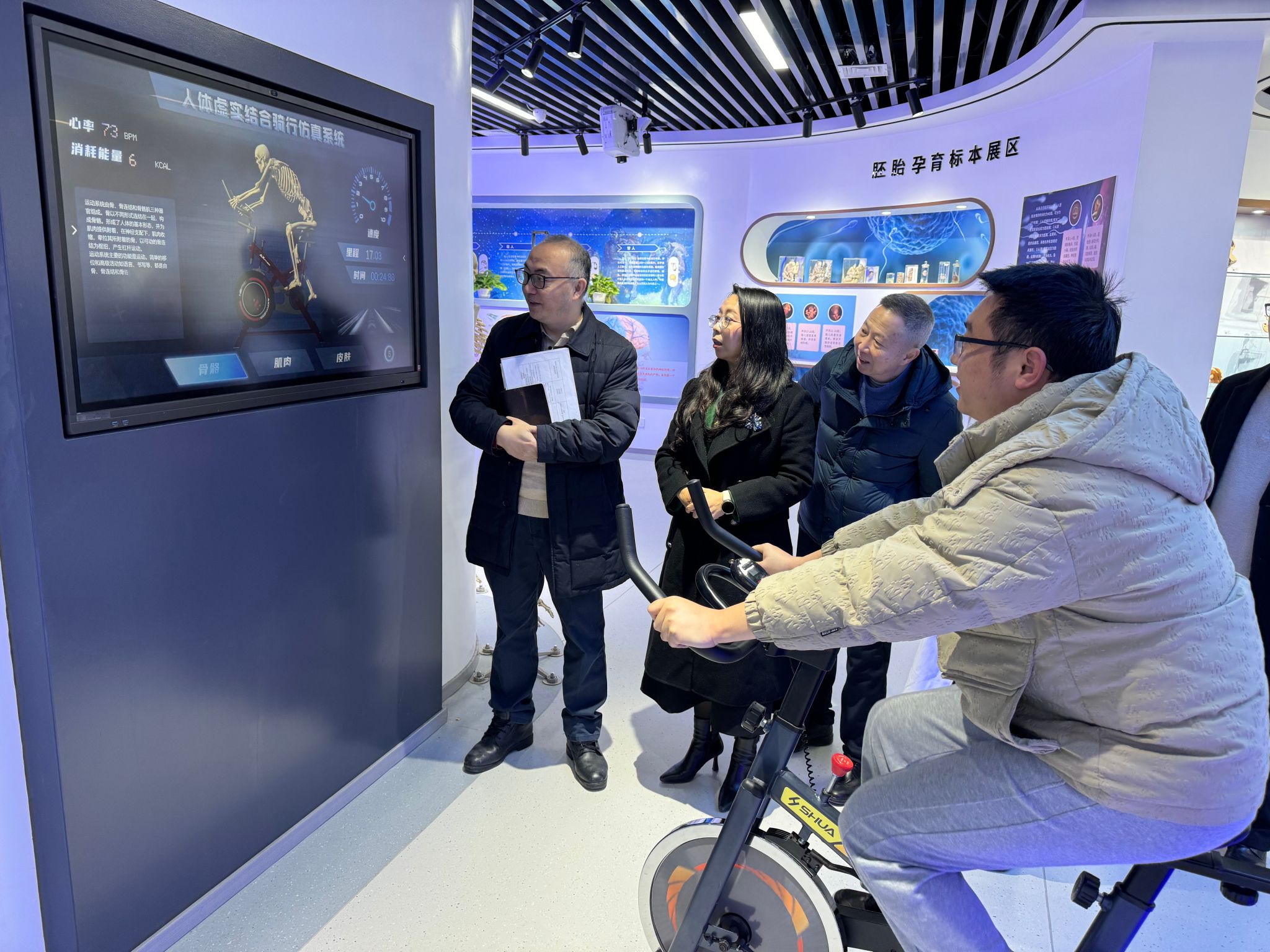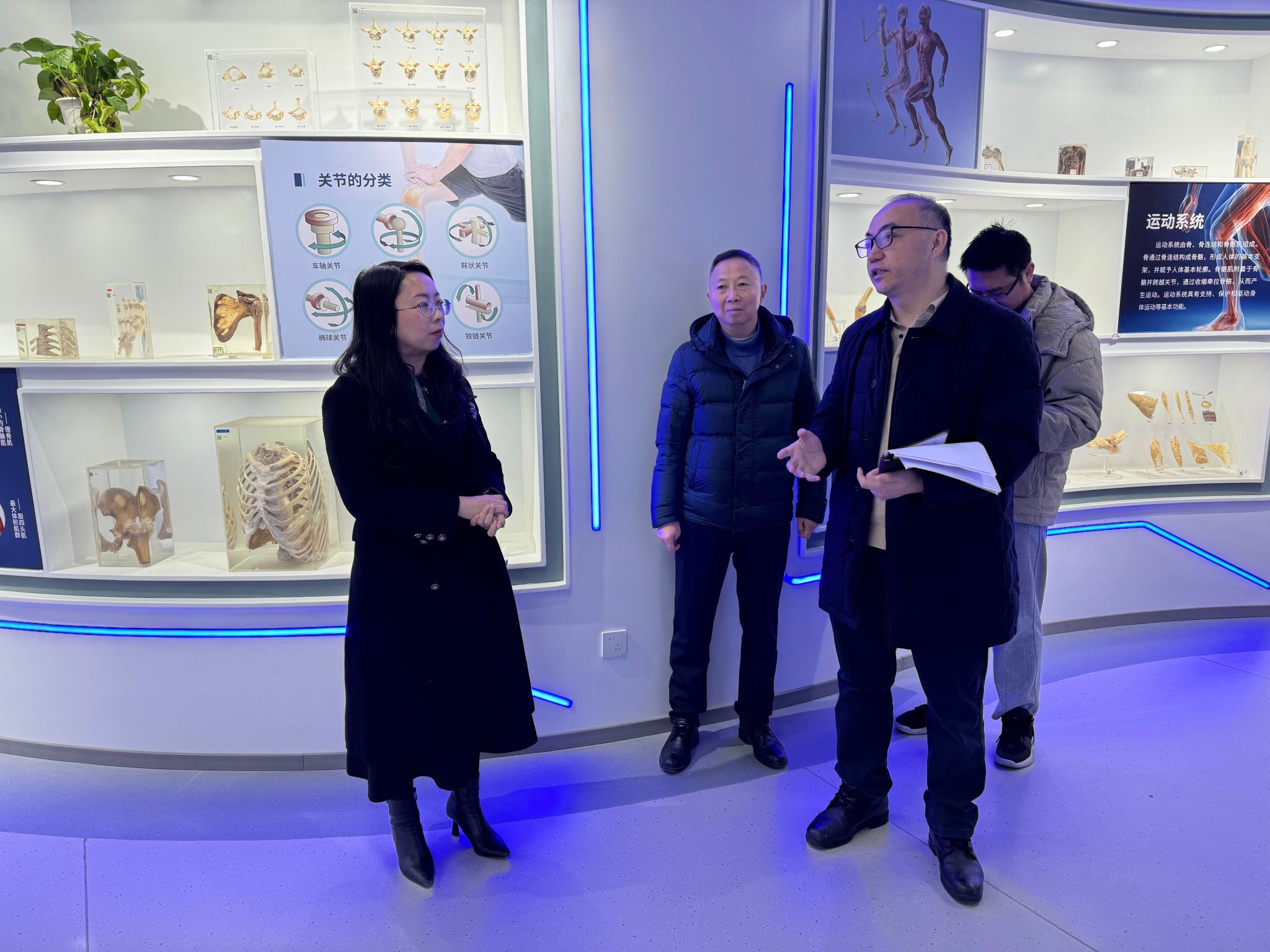 唐兵一行先后实地考察了学校生命与健康科技馆、红十字应急救护培训基地、智能制造研学基地、京东产业学院直播中心以及光伏科技文化馆。详细了解场馆的设施建设、科普教育资源整合、研学课程开发与实践运营情况,并就如何进一步发挥学校特色资源优势,打造精品科普研学路线、丰富研学产品内涵、提升服务社会效能等方面,与大家进行了深入交流。