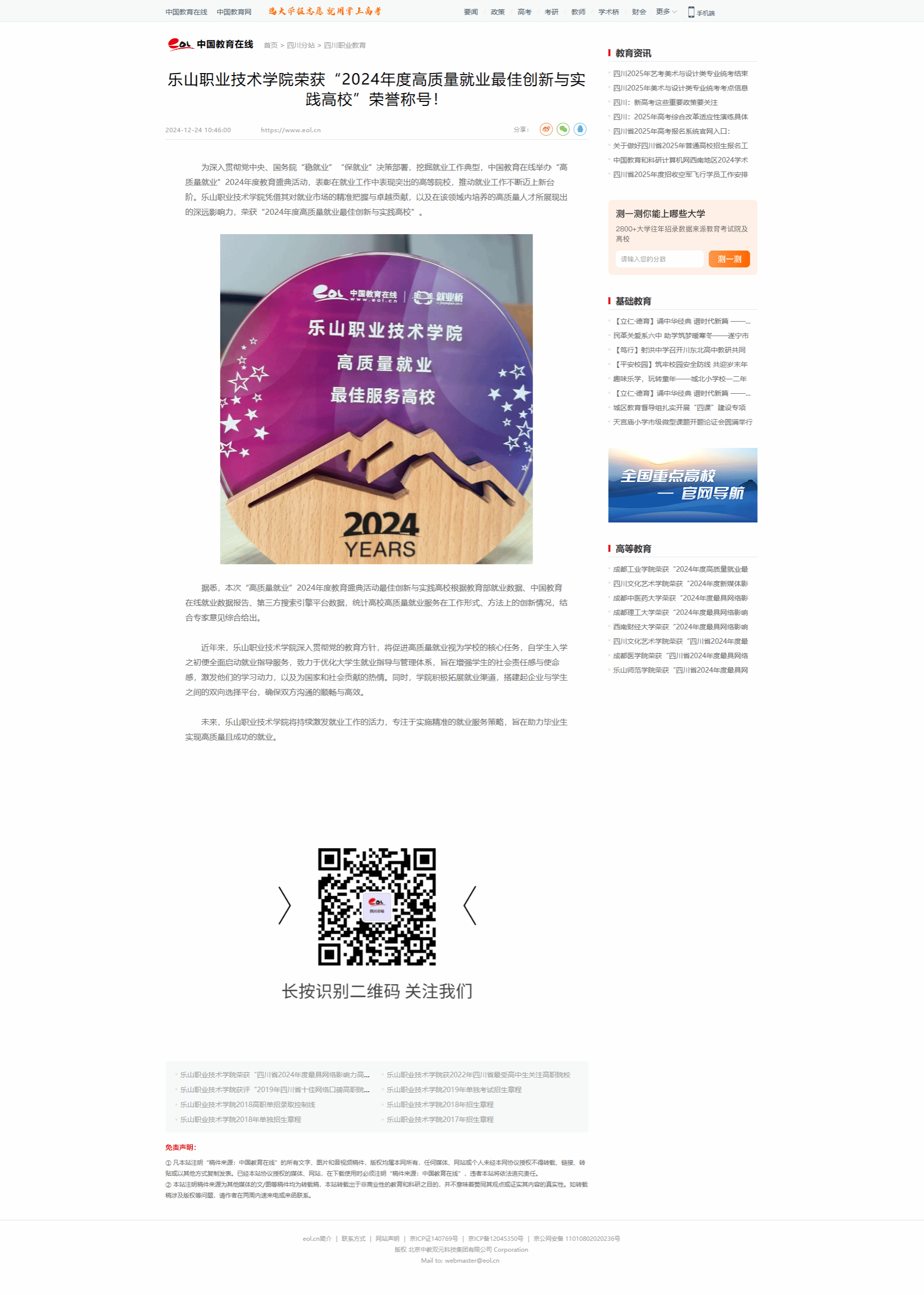 中国教育战线:星空体育平台官方网站荣获“四川省2024年度最具网络影响力高职院校”