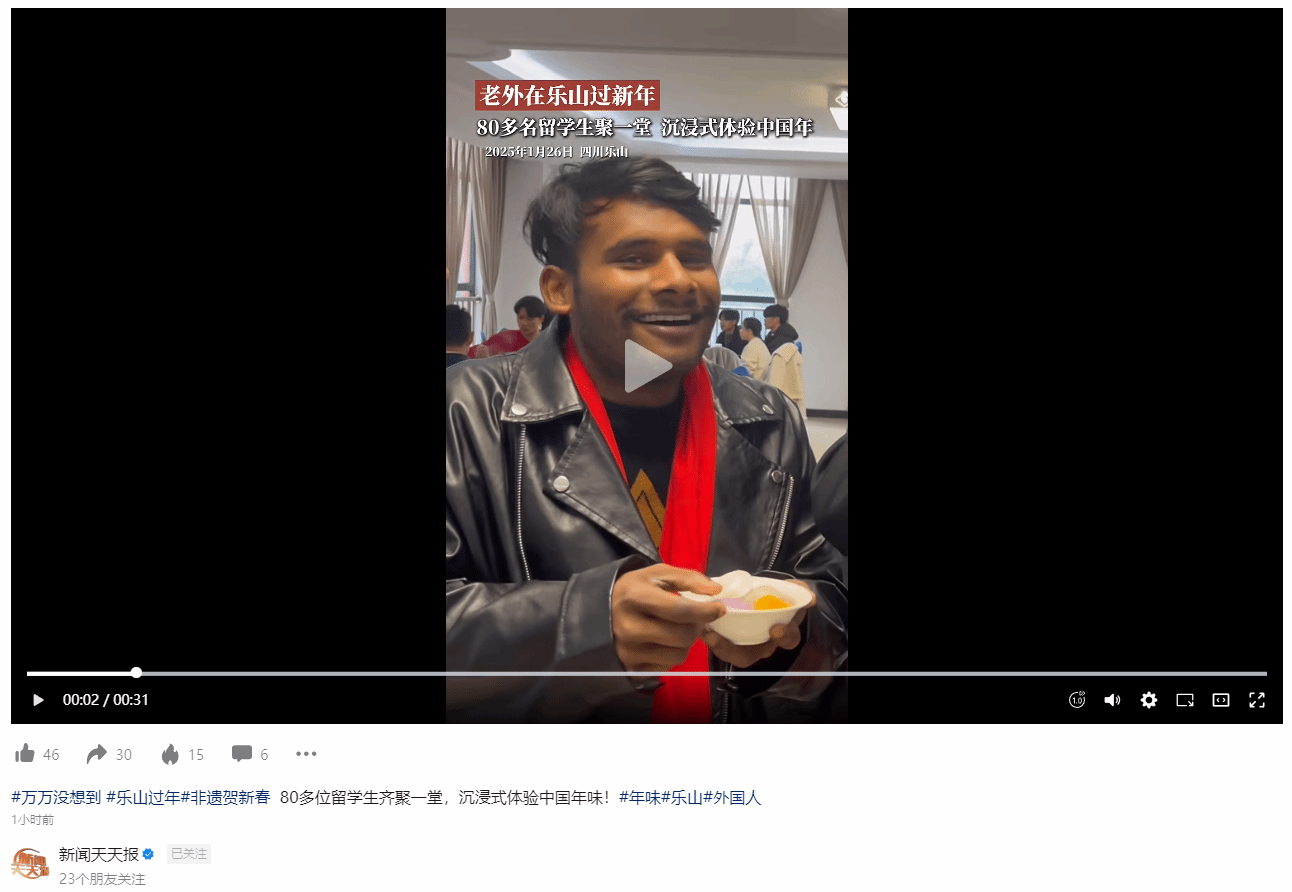 新闻天天报:老外在中国过新年——80多位留学生齐聚一堂,沉浸式体验中国年味!