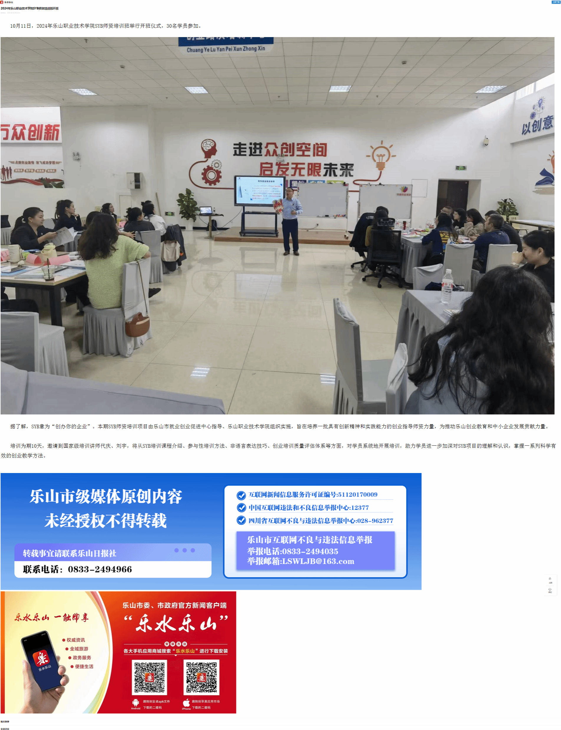 乐水乐山:2024年星空体育平台官方网站SYB师资培训班开班