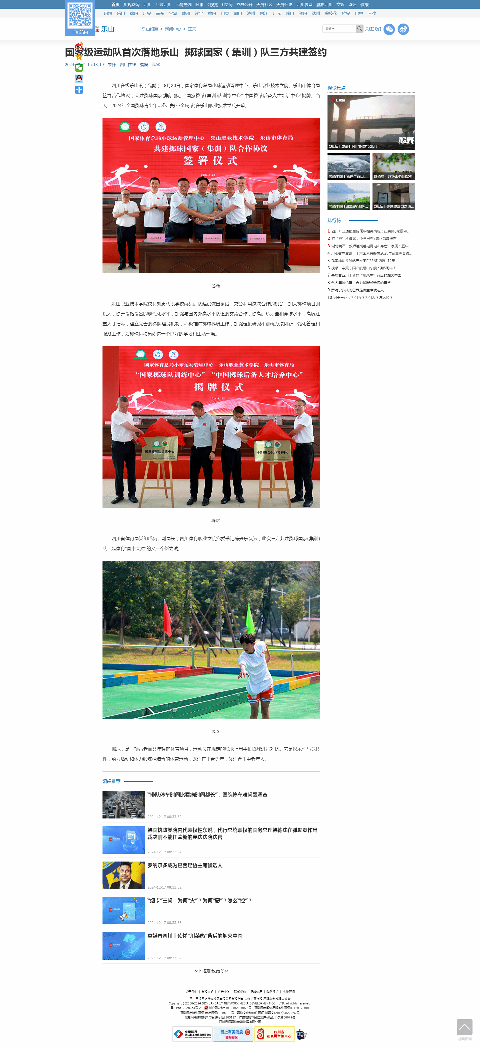 四川在线网:国家级运动队首次落地乐山 掷球国家(集训)队三方共建签约