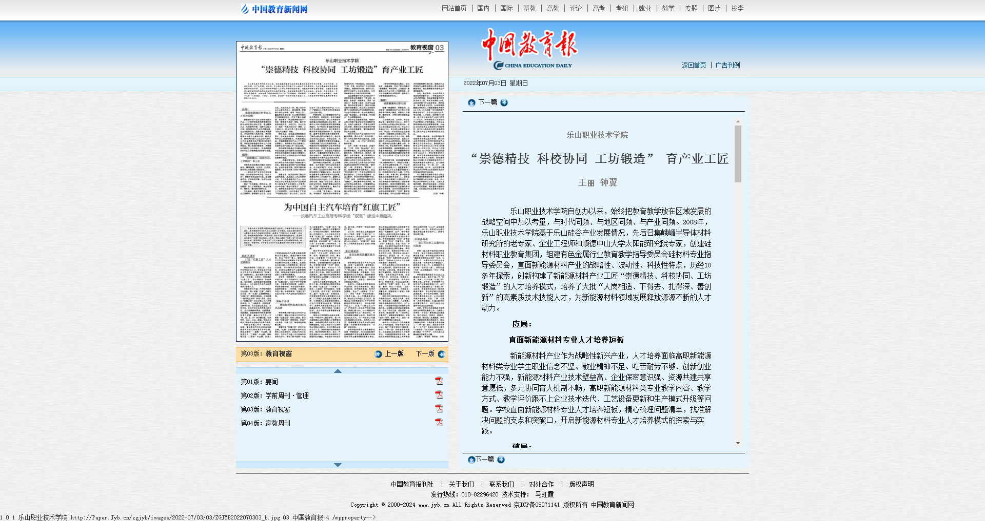 中国教育报:星空体育平台官方网站“崇德精技 科校协同 工坊锻造” 育产业工匠