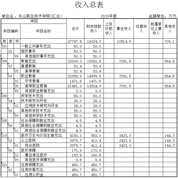2015年星空体育平台官方网站收入决算总额为31573.5万元,其中:当年财政拨款收入16224万元,事业收入10814.6万元,其他收入709.1万元,用事业基金弥补收支差额408.3万元,上年结转收入3417.4万元。收入决算总额较2014年减少815.38万元,主要原因是2015年上年结转收入较2014年上年结转收入降低。