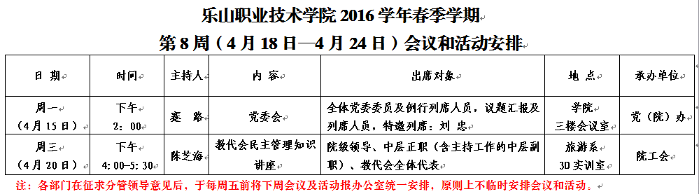 第8周(4月18日-4月24日)会议和活动安排