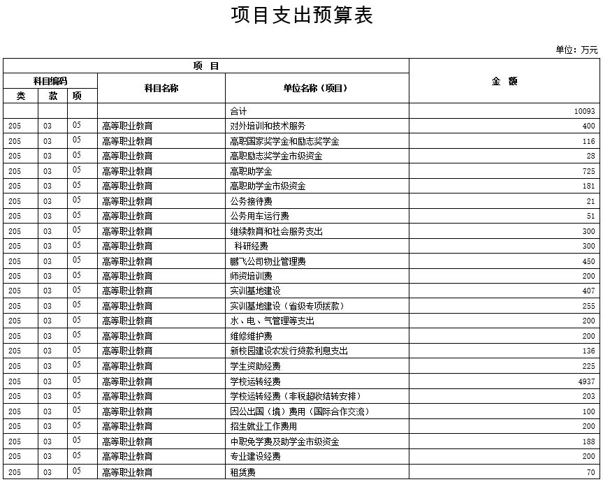 (一)教育支出,主要用于学院人员工资、日常运转以及为完成特定教学工作任务和事业发展目标而安排的年度项目支出,主要包括:教学质量建设、专业和课程建设、招生就业工作费用、继续教育和社会服务支出、科研经费、教学设施设备购置、实训基地建设、维修维护费等项目。