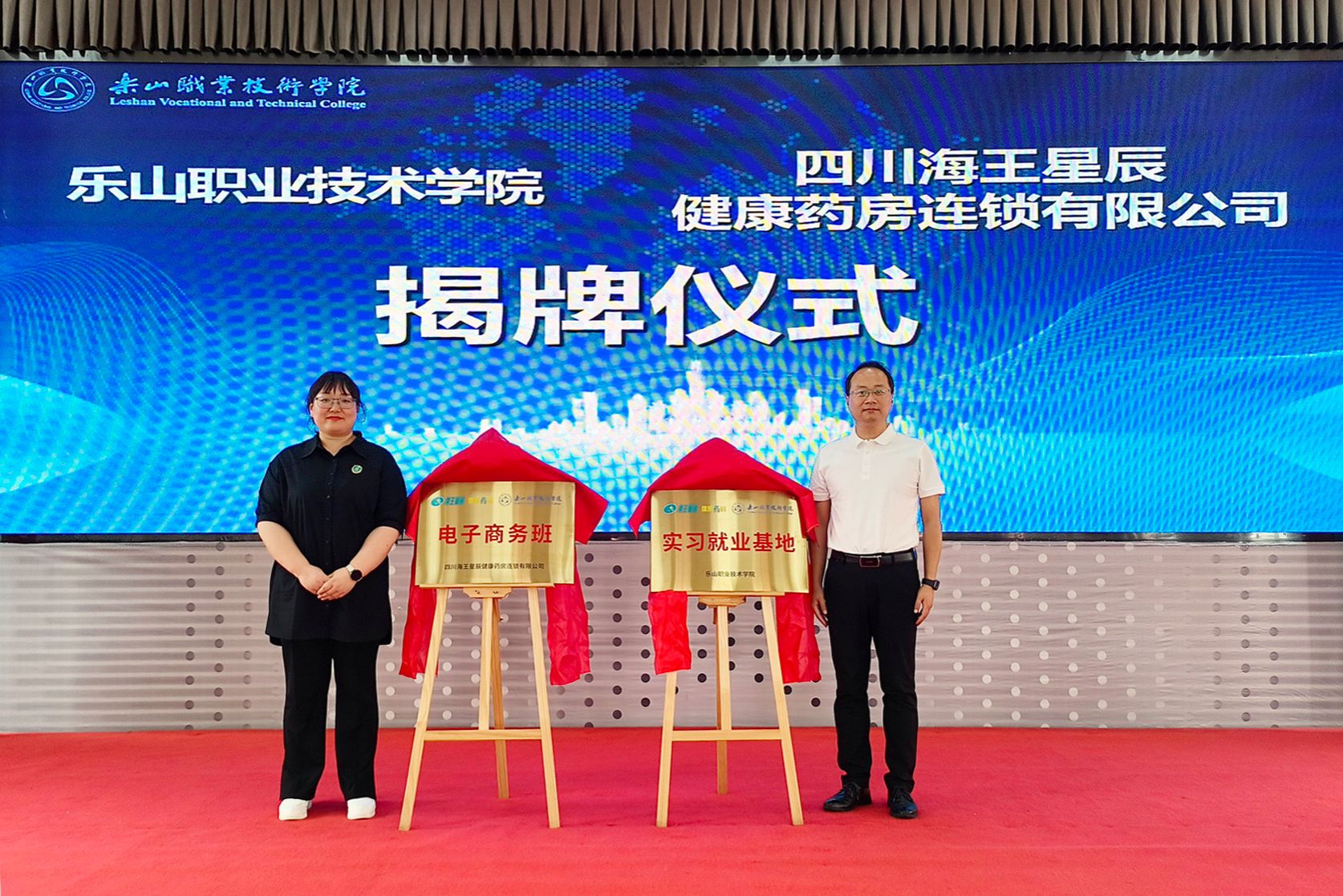 开班仪式上,张佳和王芳相共同为“海王星辰电子商务班”和“乐山职业技术校外实践教学基地”揭牌,为“海王星辰电子商务班”学员授予班徽和定制笔记本。星空体育平台官方网站毕业生、海王星辰优秀员工林静和“海王星辰电子商务班”学生代表汪怡莲作了发言。