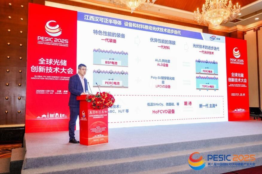 行业专家与企业代表围绕光储技术创新、产业化应用及产业趋势展开深度分享。思格新能源崔昊、高测股份邢旭、海天光伏高秋白等聚焦技术落地,分别介绍全模块化光储解决方案、光伏切割技术创新、n-TOPCon 高效金属化方案,展现技术在提效降本中的核心价值;美科股份文勇、江西汉可黄海宾、鹑火光电马跃深入解读 CCZ 单晶硅技术、钙钛矿/晶硅叠层电池设备方案,为行业技术升级提供新路径。TÜV 北德刘亮、英发睿能科龙盛针对产品失效风险、高效晶硅电池产业化挑战提出应对思路;中国银河证券曾韬从资本视角解析储能行业趋势,首航能源、伟力得能源等企业代表分享新型储能技术研发与项目进展,双良、聚和、清电易、海目星激光等也从装备、材料、项目运营、激光技术等维度献策,全方位为光储产业高质量发展注入技术动能。