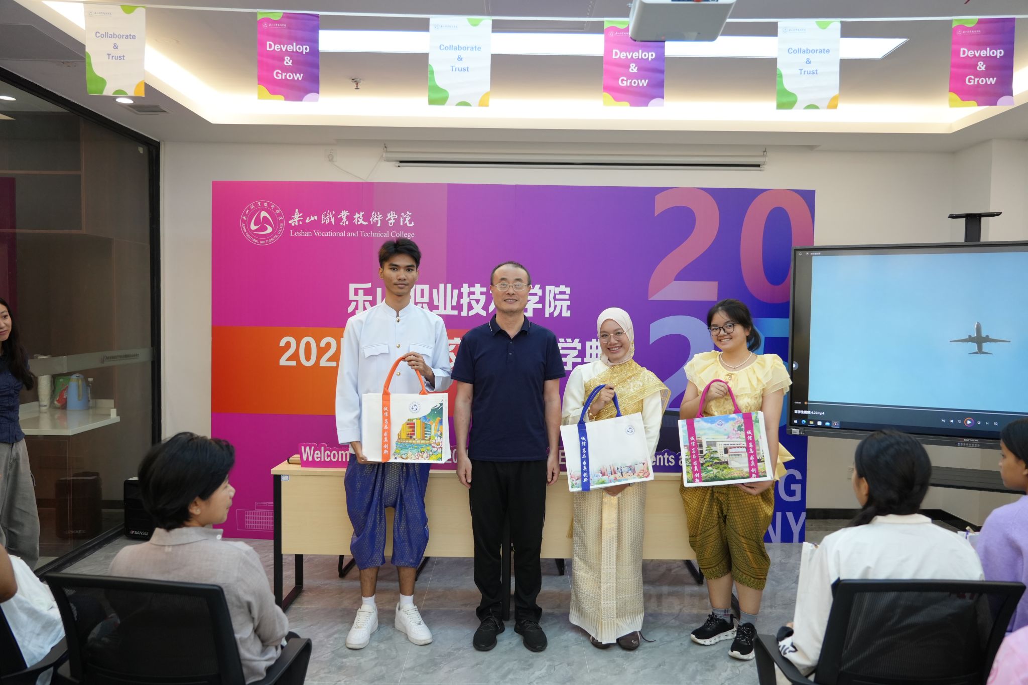 典礼最后,校领导和泰国交换生及家长代表互赠礼品并合影留念,记录下这一难忘的时刻。