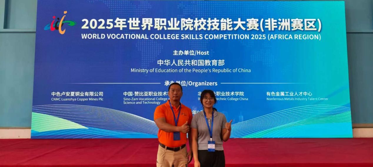 2025年9月4日—6日,2025年世界职业院校技能大赛非洲赛区比赛在赞比亚卢安夏中国-赞比亚职业技术学院举办,本次赛事共有来自赞比亚、尼日利亚、南非、坦桑尼亚4个国家的28支队伍参赛,我校教师权慧英、柳宇积极参与本届赛事的各项组织承办工作。