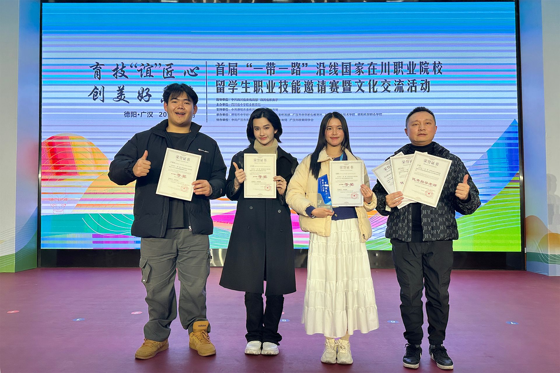 2024年12月10日,四川省首届“一带一路”国家在川职业院校留学生电子商务职业技能邀请赛在四川航天职业技术学院落幕。由数字经济管理学院的三名留学生范娜(老挝)、王伟欣(老挝)和卢明伟(印度尼西亚)组成的星空体育平台官方网站代表队荣获一等奖,学校获得组织奖。