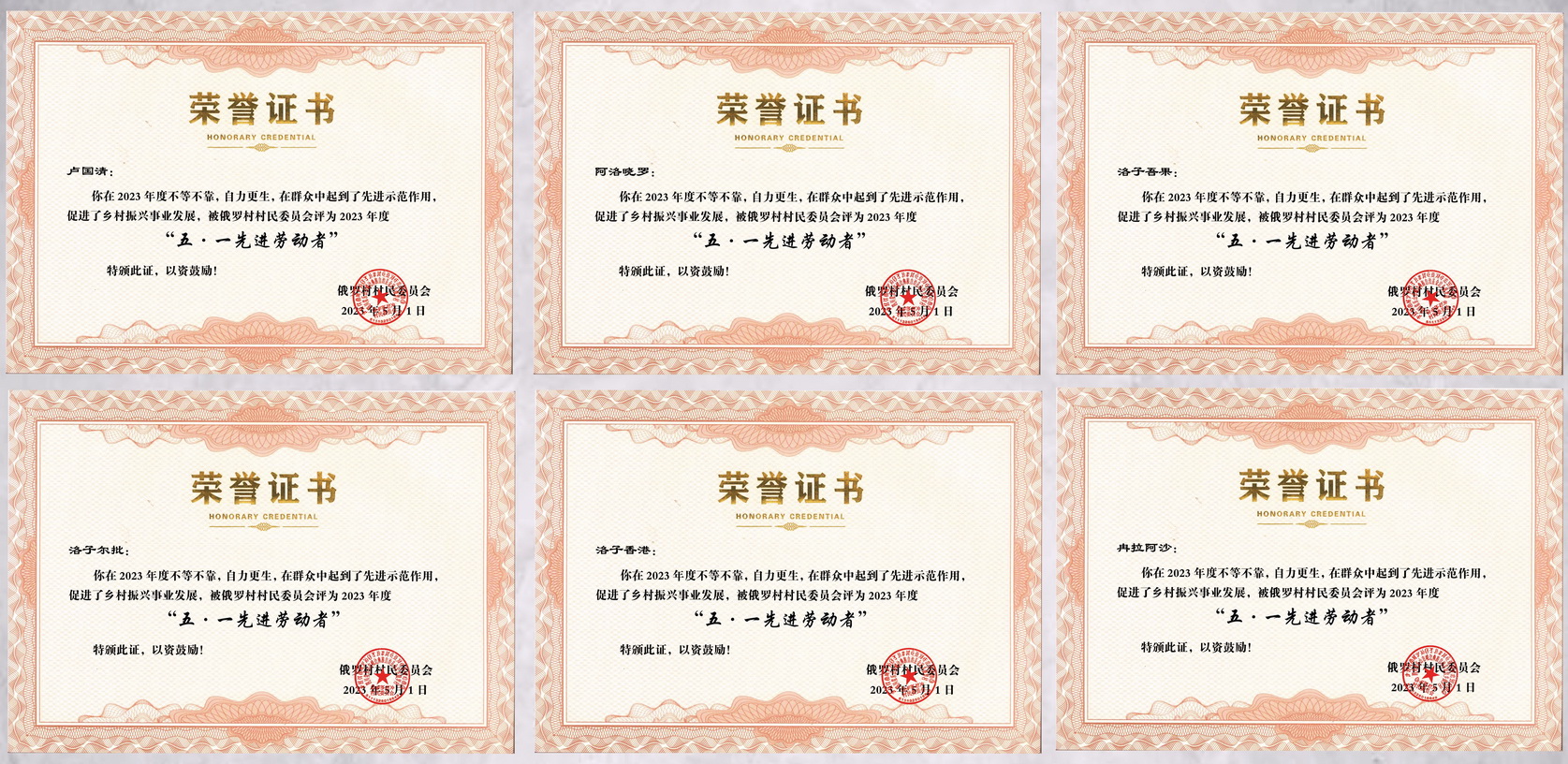 为鼓励群众“不等不靠”,树立“自力更生”典范,星空体育平台官方网站在峨边彝族自治县俄罗村设立了“激励自立”项目帮扶资金。近日,经组长推荐,村委会审核,评选出了冉拉阿沙等6名在种植养殖和带动务工方面表现突出的村民为俄罗村2023年度“先进劳动者”。第一书记刘科为他们颁发了荣誉证书和3000元奖金。