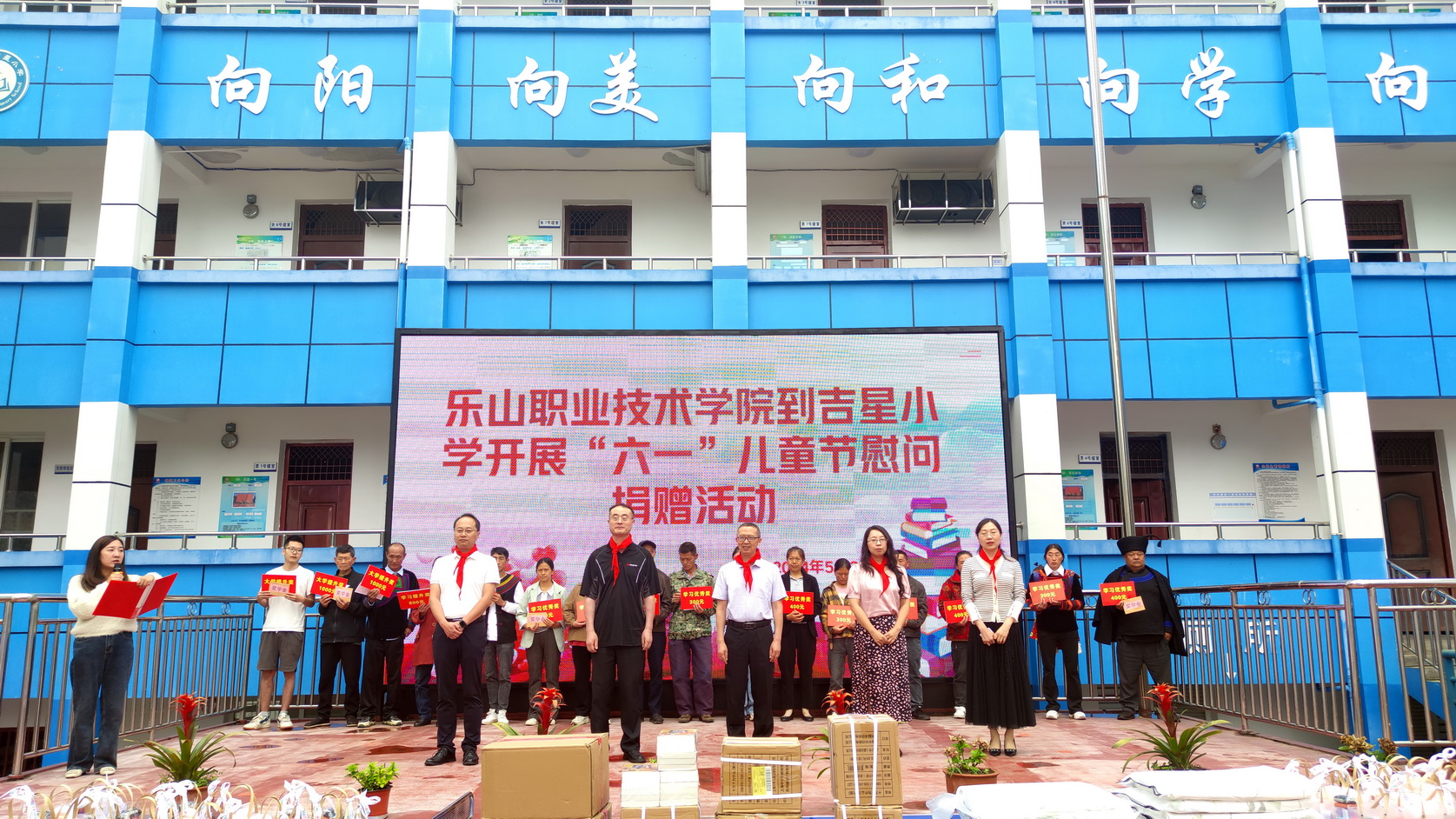 刘忠、张佳、周芹代表星空体育平台官方网站向吉星小学捐赠4张乒乓球台、187册图书,为35名幼儿园小朋友赠送学习用品,为吉星小学5名优秀教师赠送礼物。鼓励大家勤学善思、心怀梦想、向上向善。