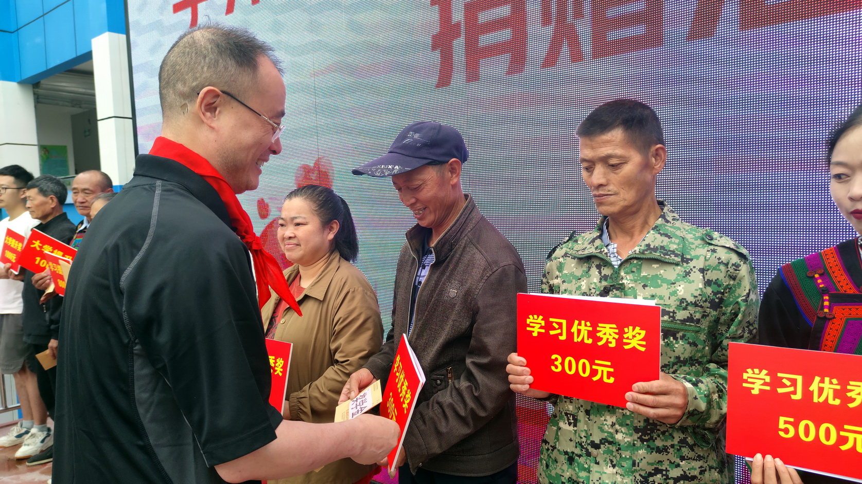 活动中,刘忠一行还向考入高职、中职,以及在各年级期末考试中取得优异名次的16名学生的家长发放奖助学金,共计8700元,传达星空体育平台官方网站对山区孩子的深情厚谊。