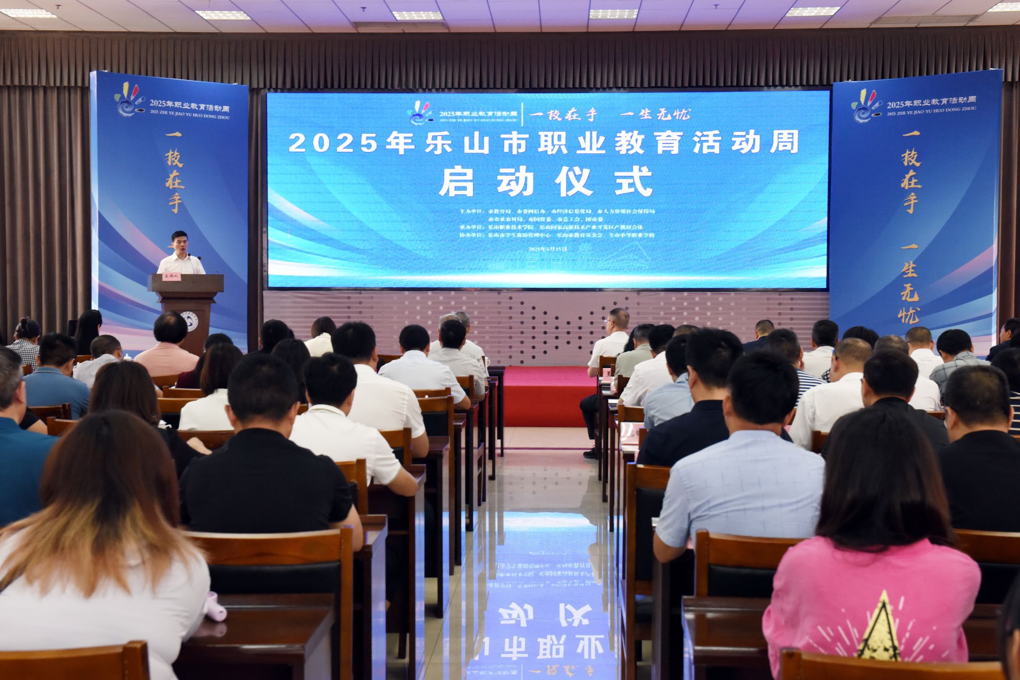 2025年5月15日,以“一技在手、一生无忧”为主题的2025乐山市职业教育活动周启动仪式在星空体育平台官方网站举行,乐山市人大常委会副主任周伦斌出席活动并宣布职业教育活动周启动。乐山市有关部门负责同志,3个省级现代产业学院负责同志,各县(市、区)政府、教育行政部门分管负责同志,全市中职(技工)学校校长、普职融通班结对的普通高中学校校长、部分初中学校校长代表、企业代表等200余人参加活动。乐山市教育局总督学陈凯主持开幕式。