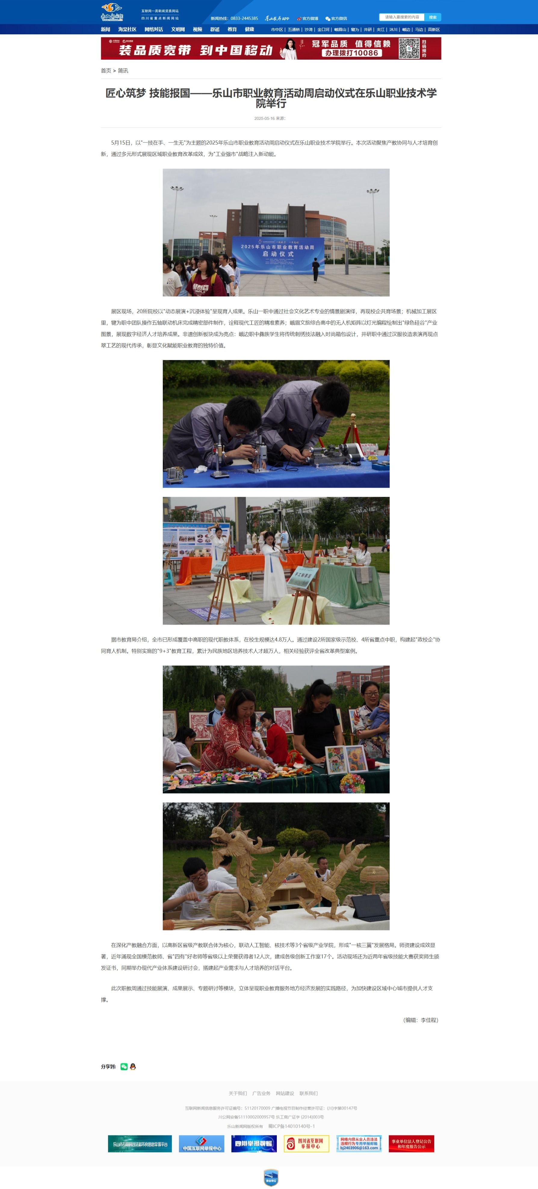 乐山新闻网:匠心筑梦 技能报国——乐山市职业教育活动周启动仪式在星空体育平台官方网站举行