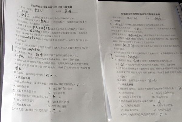 依法治教是把教育管理和办学活动纳入法治轨道、提高教育治理体系和治理能力现代化的重要内容,是建设法治校园,促进高等职业教育健康发展重要的途径。机关工会以普法教育为契机,在试题的设计上,把《教育法》、《教师法》、《四川省教职工代表大会工作条例》作为重点内容进行学习宣传,题型包括填空题、单项选择题、多项选择题。通过这次活动,为学院进一步做好依法治校工作打下了坚实的基础。