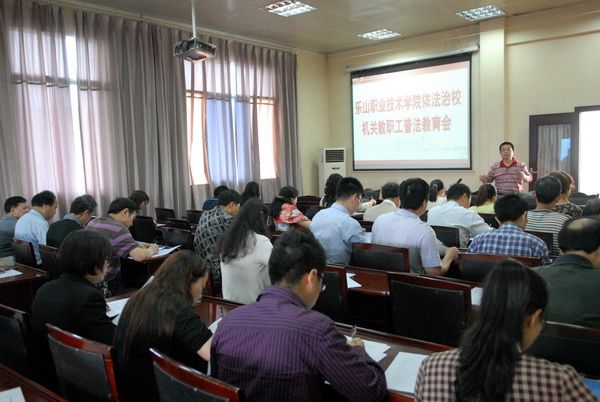 按照《星空体育平台官方网站依法治校工作方案》的要求,学院机关工会于4月17日上午在六楼会议室组织机关职工近百人开展了《星空体育平台官方网站依法治校普法教育》活动,活动现场,严肃认真,取得园满成功。