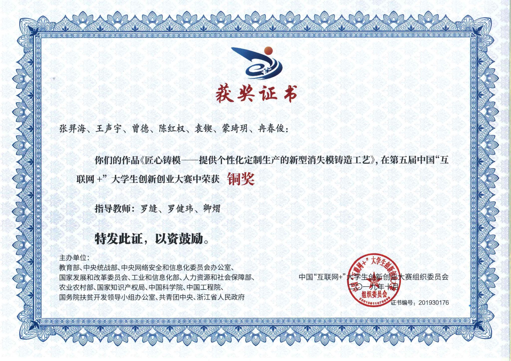 学院学生获第五届中国“互联网+”大学生创新创业大赛铜奖