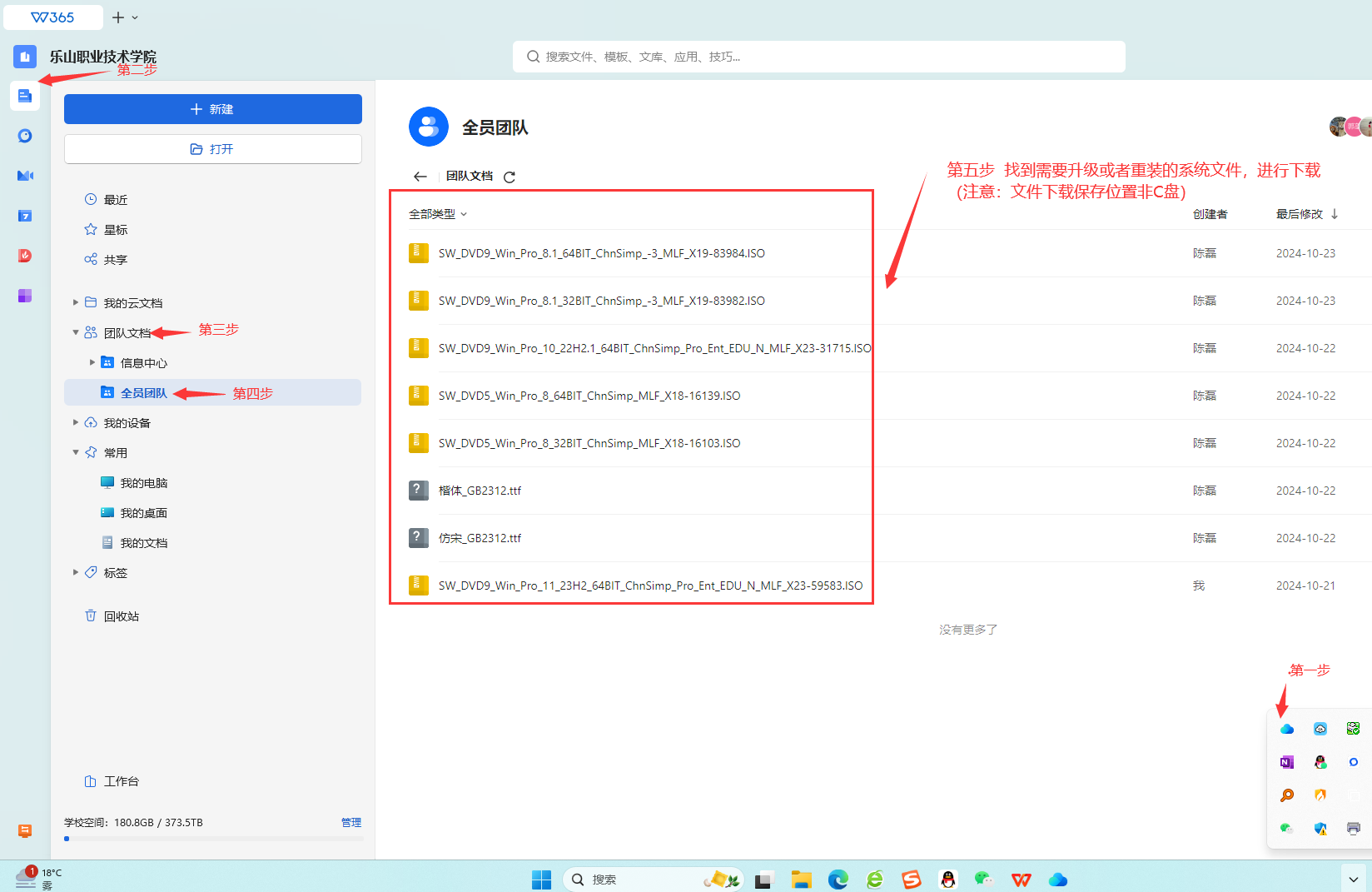在wps云盘里下载操作系统对应版本的镜像文件(.iso文件),保存在C盘以外的盘,如D盘。
