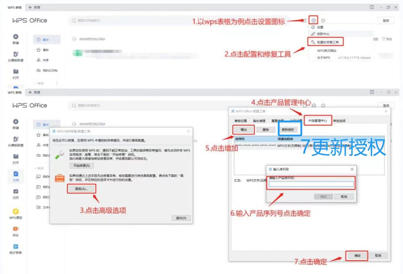 注意:若第一次启动wps后未输入序列号,可以通过以下步骤再次输入序列号进行激活