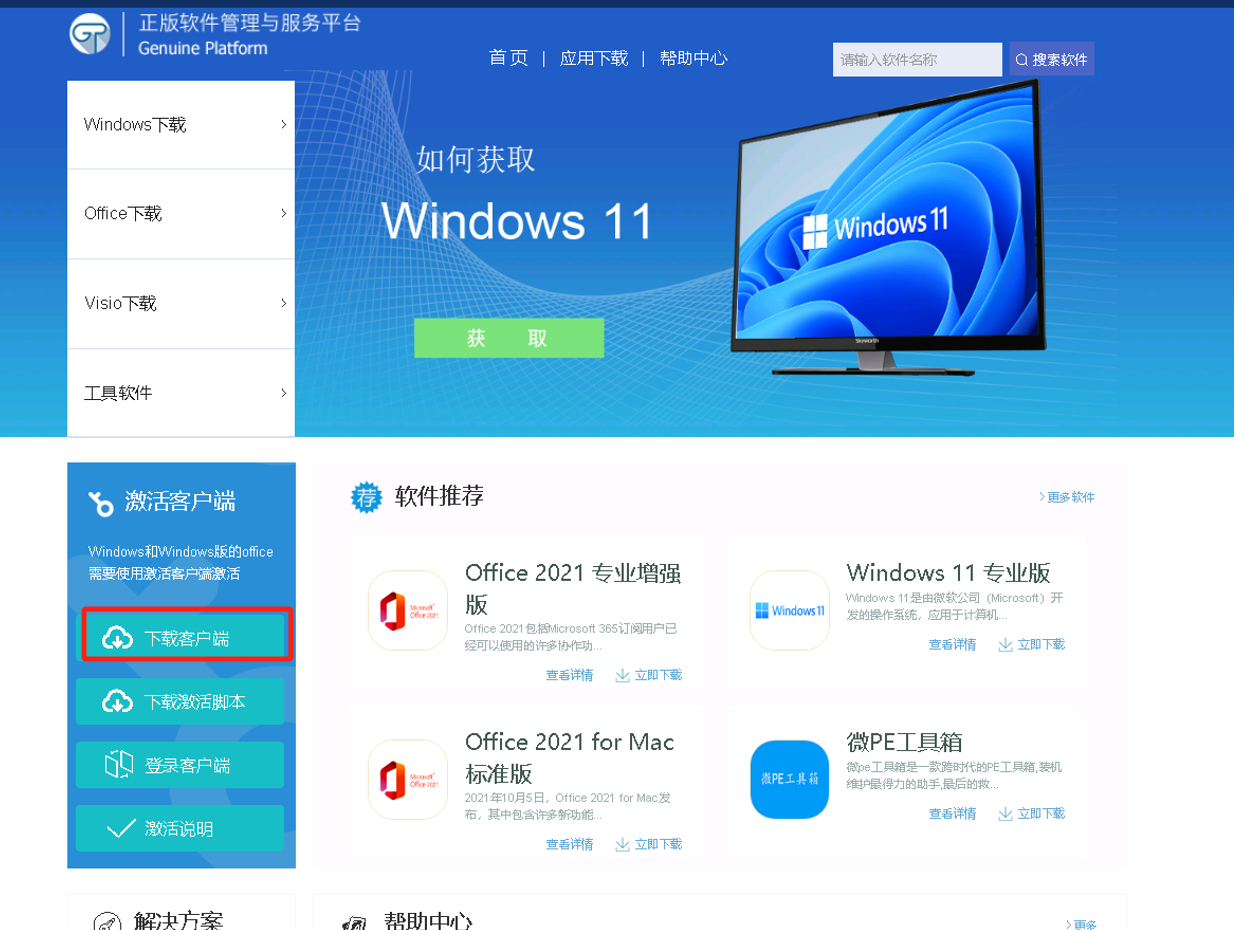 下载软件正版化管理平台再次激活操作系统,具体操作步骤如下: